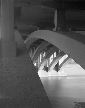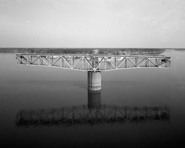The George P. Coleman Memorial Bridge, spanning the York River between Gloucester Point and York, Virginia, is one of the largest and last steel deck-truss double swing span bridges in the world. It was built in 1950 to 1952 during the post-World War II transportation improvements era, but was earmarked for major modification in the early 1990s due to severely increased traffic in the area. It was documented prior to the addition to its entire length of cantilevered lanes on either side. The swing spans were lifted off with cranes and expanded and dropped back into place. Documentation required intensive photography of the bridge from many surrounding vantage points, inside caissons, under the deck, in traffic lanes, and from many other points in, on, and under the bridge in order to illustrate its operation and details.